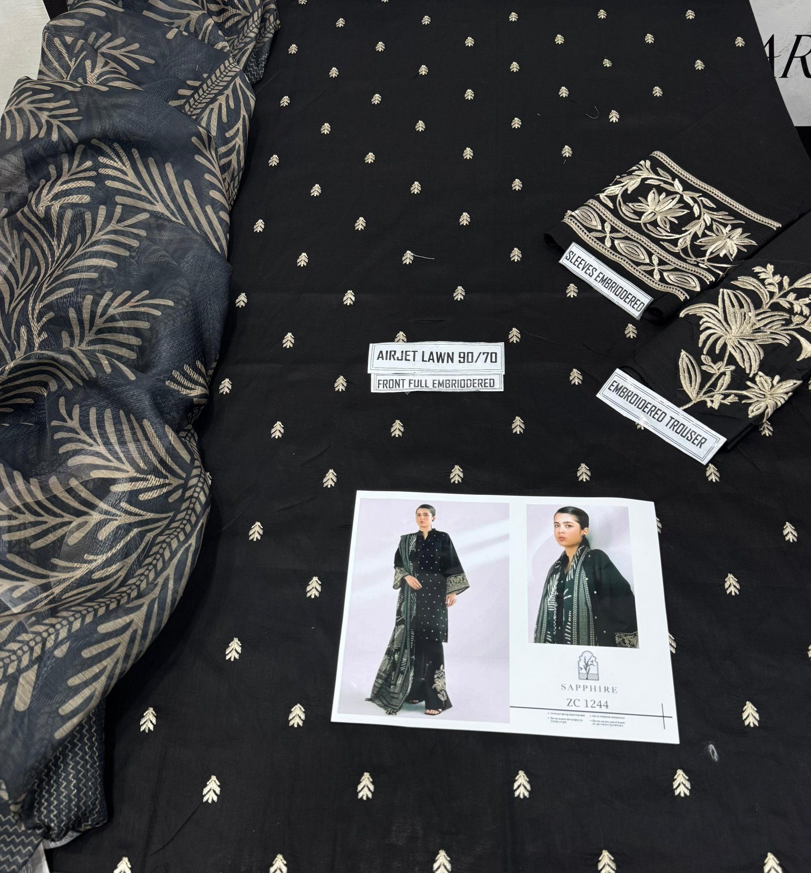 ✔️ Trouser heavy Embroidered motif like original