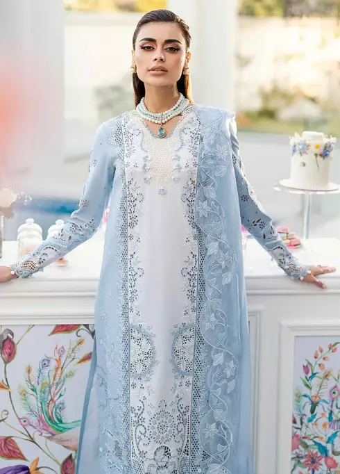 3 Piece - Lawn Embroidered Shirt With Embroidered Bamber Chiffon Dupatta