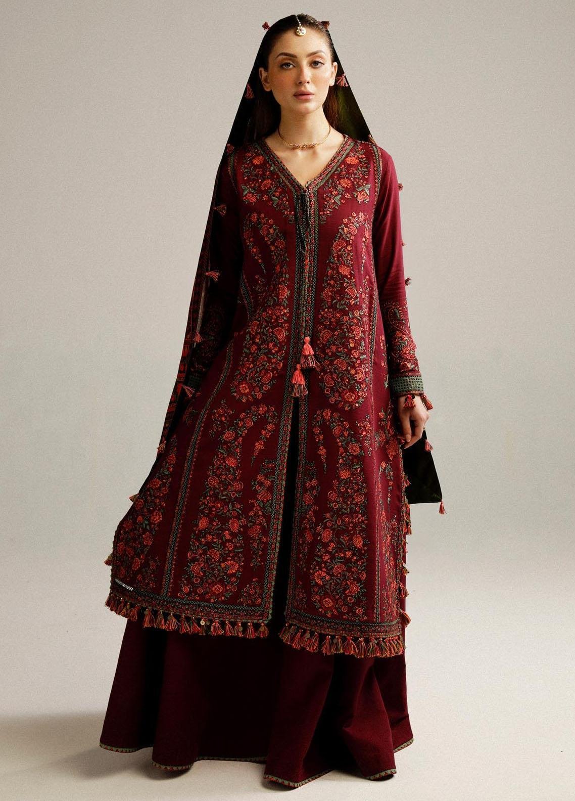 3 Piece - Unstitched Dhanak Stuff Heavy Embroidered Suit With Printed woolen Shawl