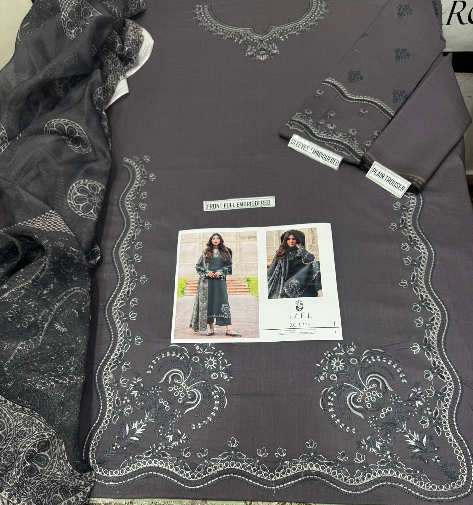 3 Piece - Unstitched Lawn Full Embroidered Shirt With Lawn Dupatta
